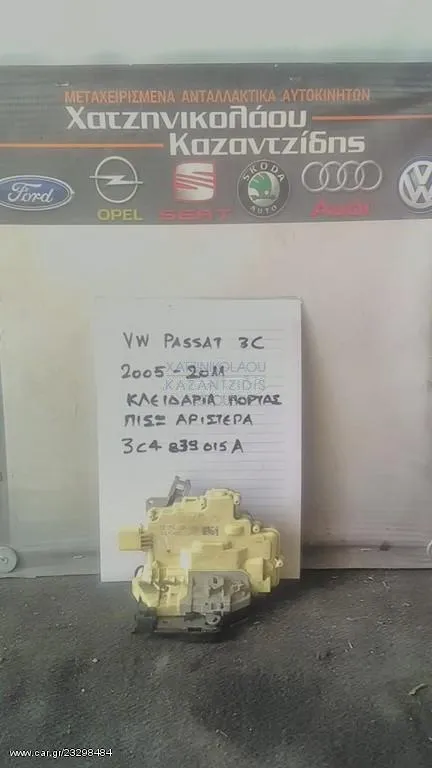 VW PASSAT 3C 2005-2011 ΚΛΕΙΔΑΡΙΑ ΠΟΡΤΑΣ ΠΙΣΩ ΑΡΙΣΤEΡΑ ΚΩΔΙΚΟΣ-3C4839015A